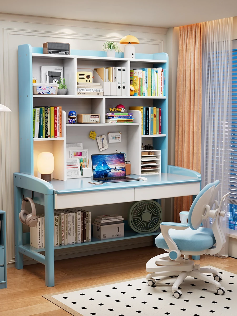 自然木製・子ども用学習デスク+本棚セット!多機能デザインで学生に最適、スタイリッシュなモダンPCデスクがあなたのワークスペースを彩る