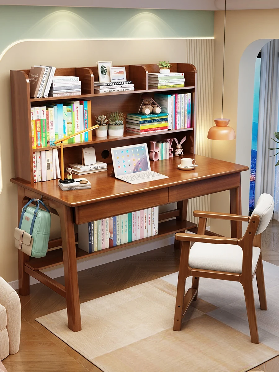 北欧スタイル天然木製デスク+本棚付き!子供用学習机、勉強机、小中学生に最適な書斎テーブル