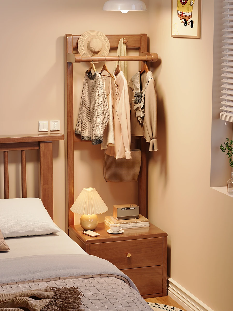 Solid Wood Bedside Storage Cabinet & Multi-Functional Coat Rack – Upgrade Your Bedroom with Practical Elegance and Style! Perfect for Organizing Your Essentials While Enhancing Your Space!