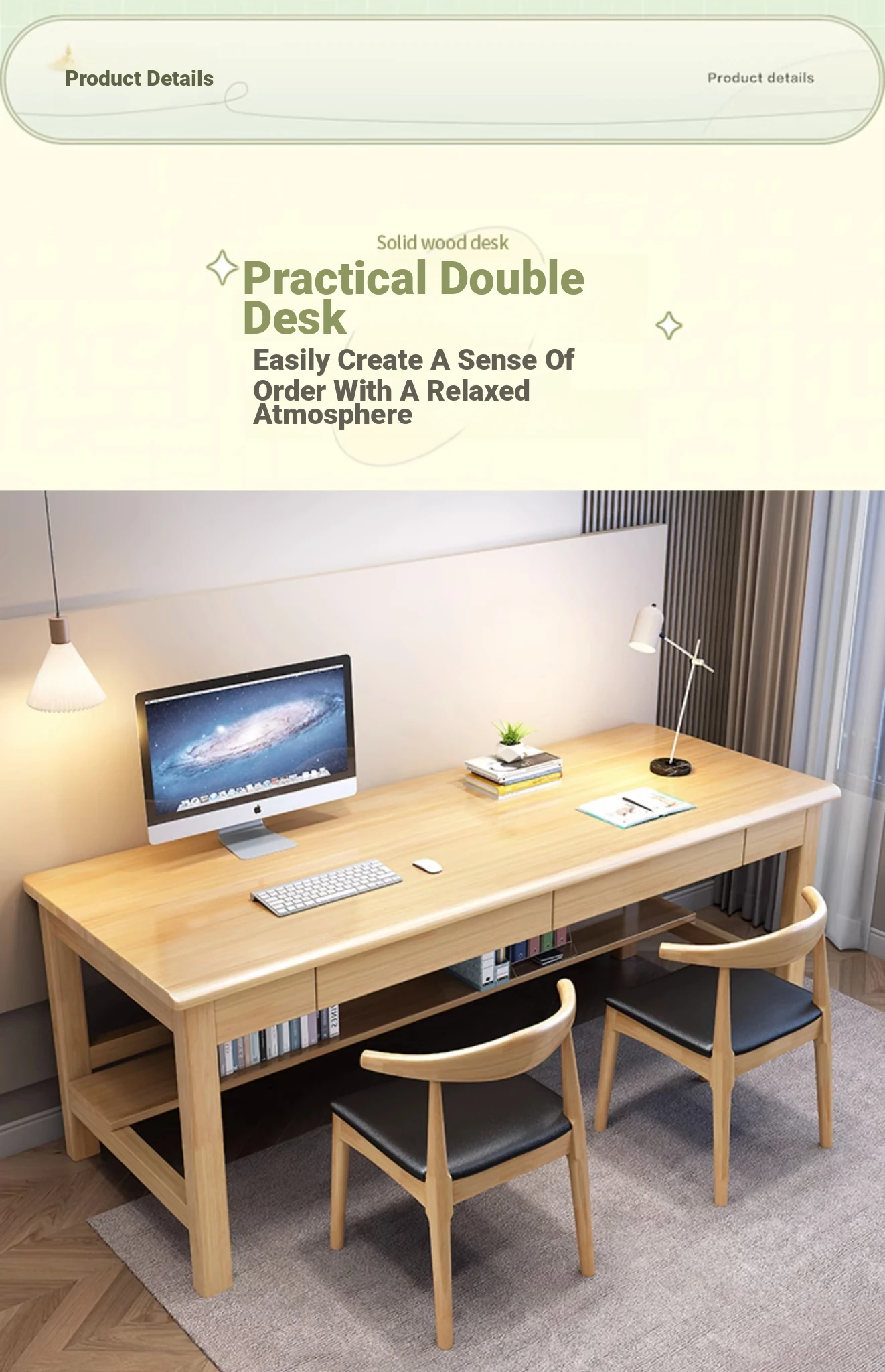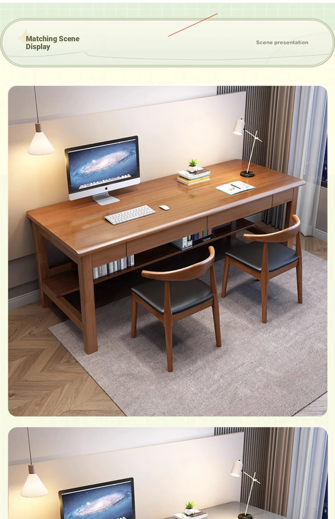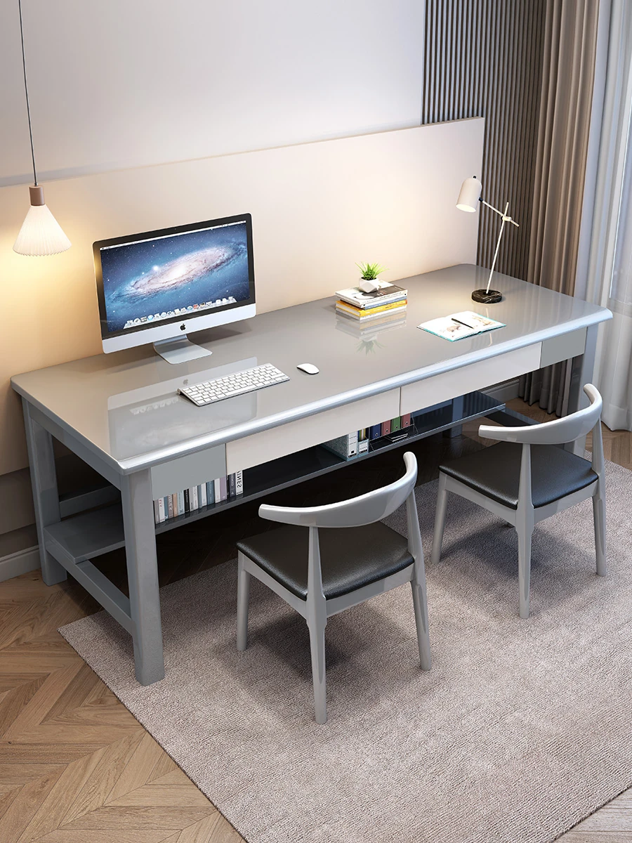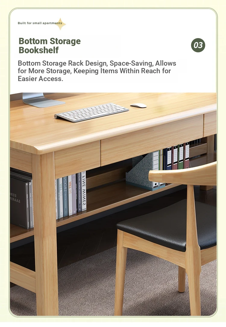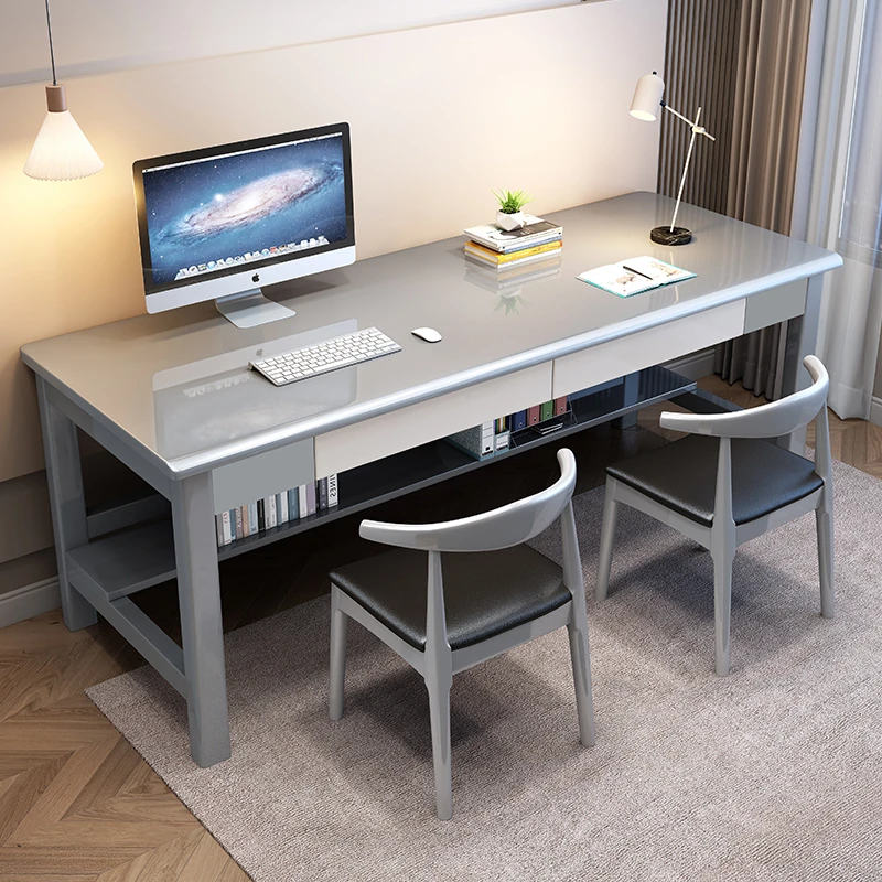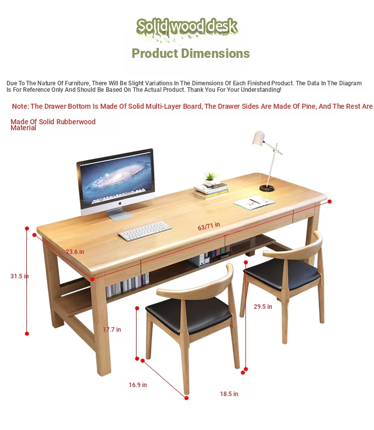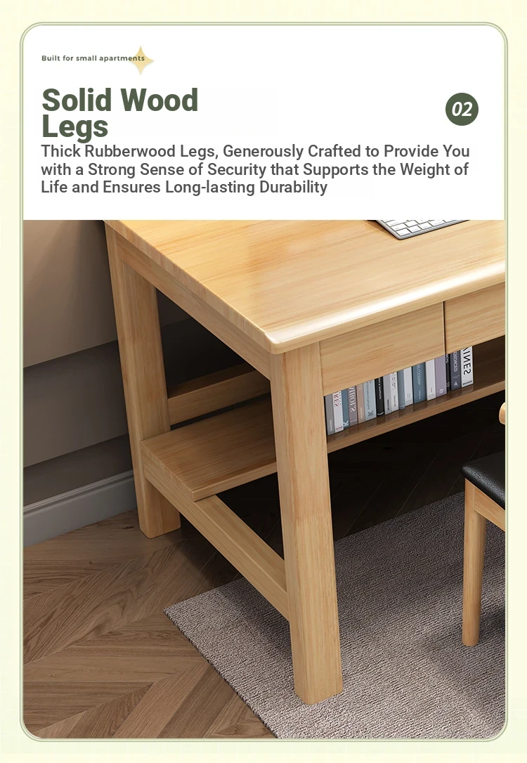 "Elegant Solid Wood Double Work Desk - Space-Saving Wall-Mounted Design for Home Office, Bedroom, or Study - Minimalist Computer Desk with Seating for Comfortable Studying and Work"