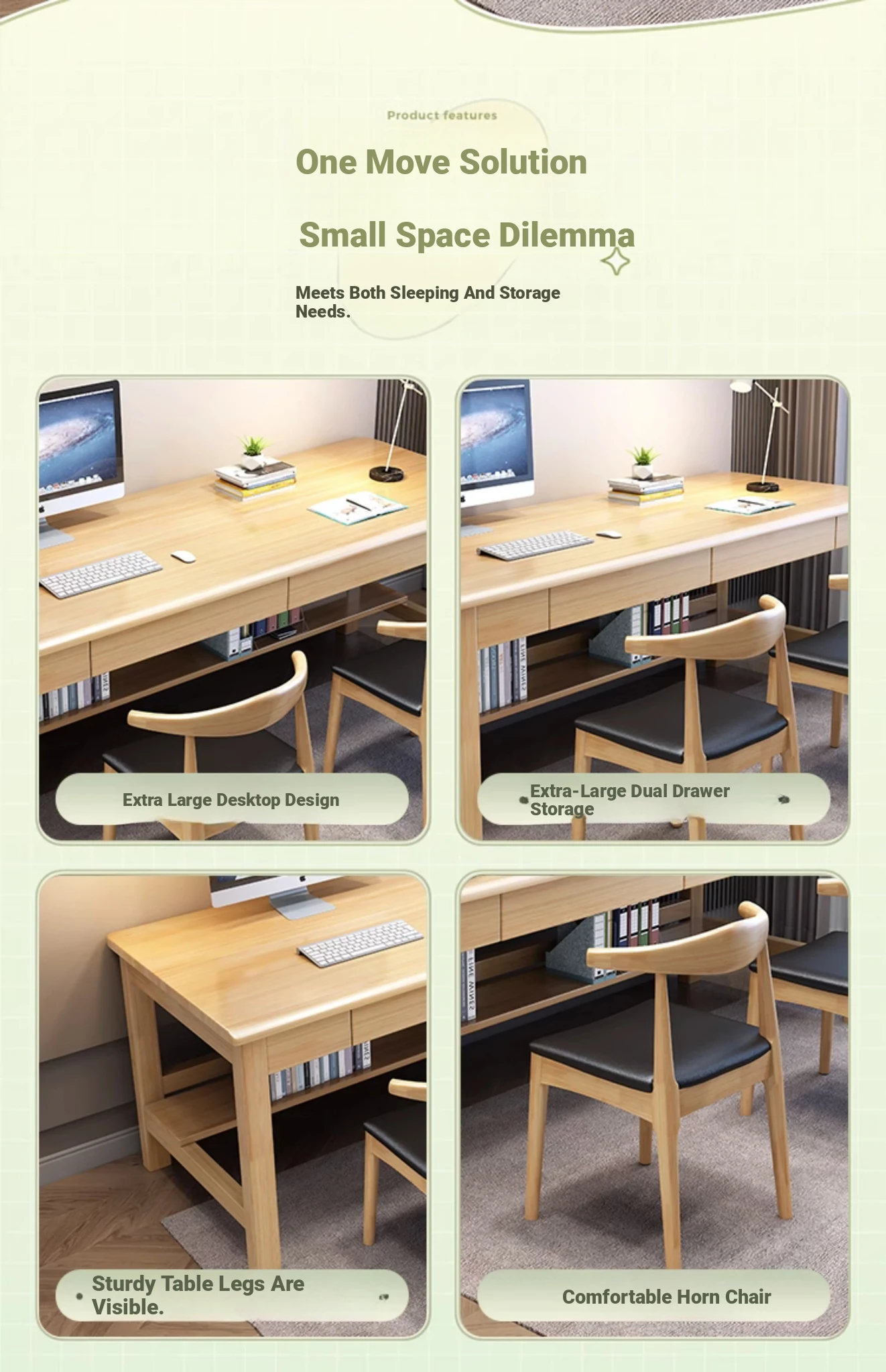 CR6000# log color table + horn chair * 2(Learning office dual-use])