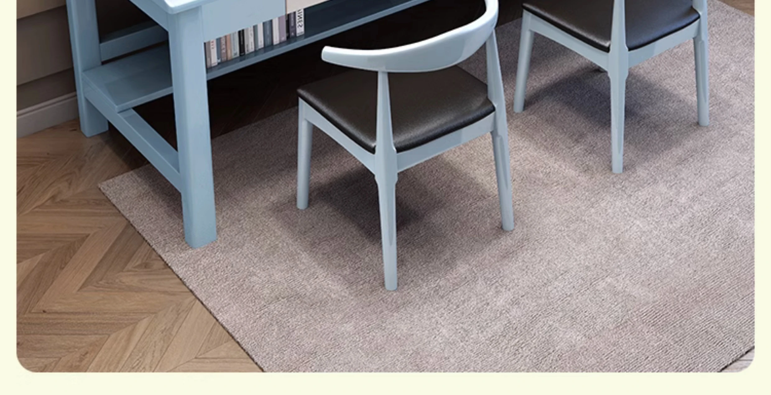 CR6000# blue and white table + horn chair * 2(Learning office dual-use])