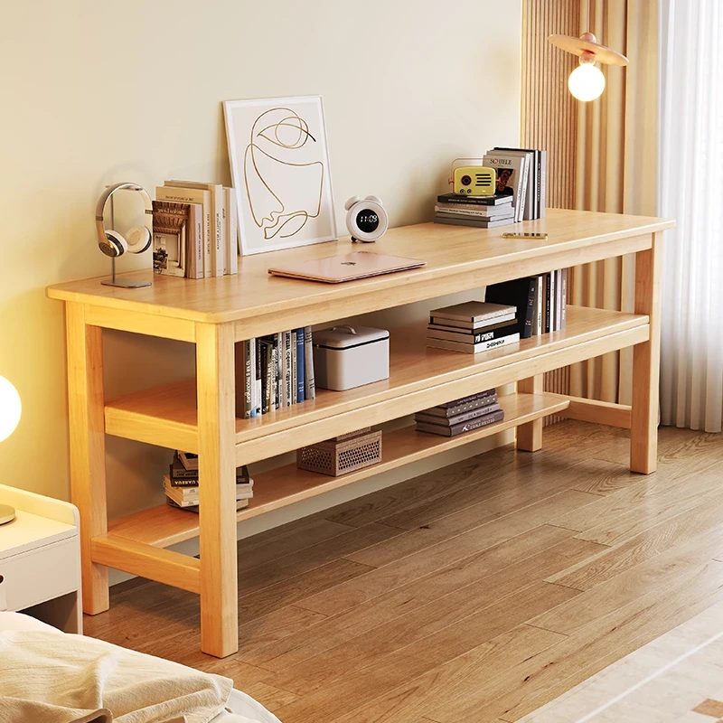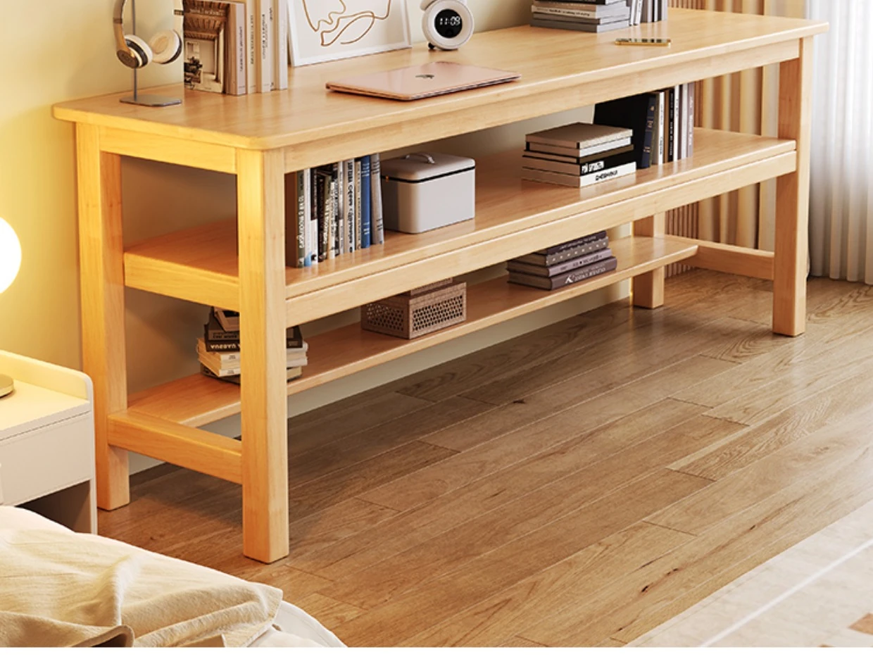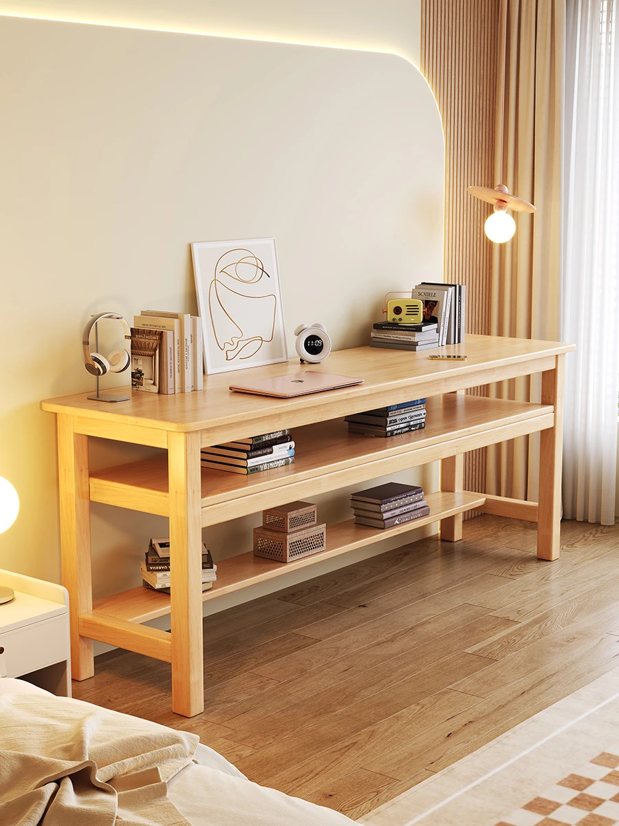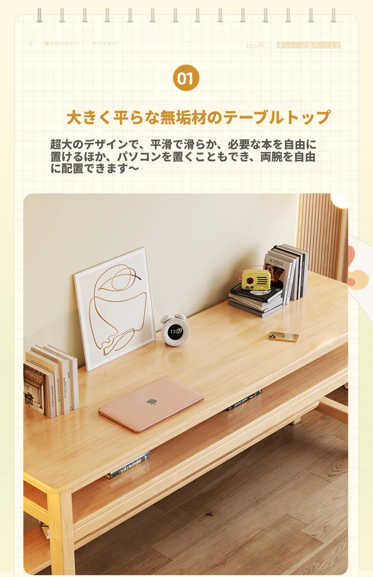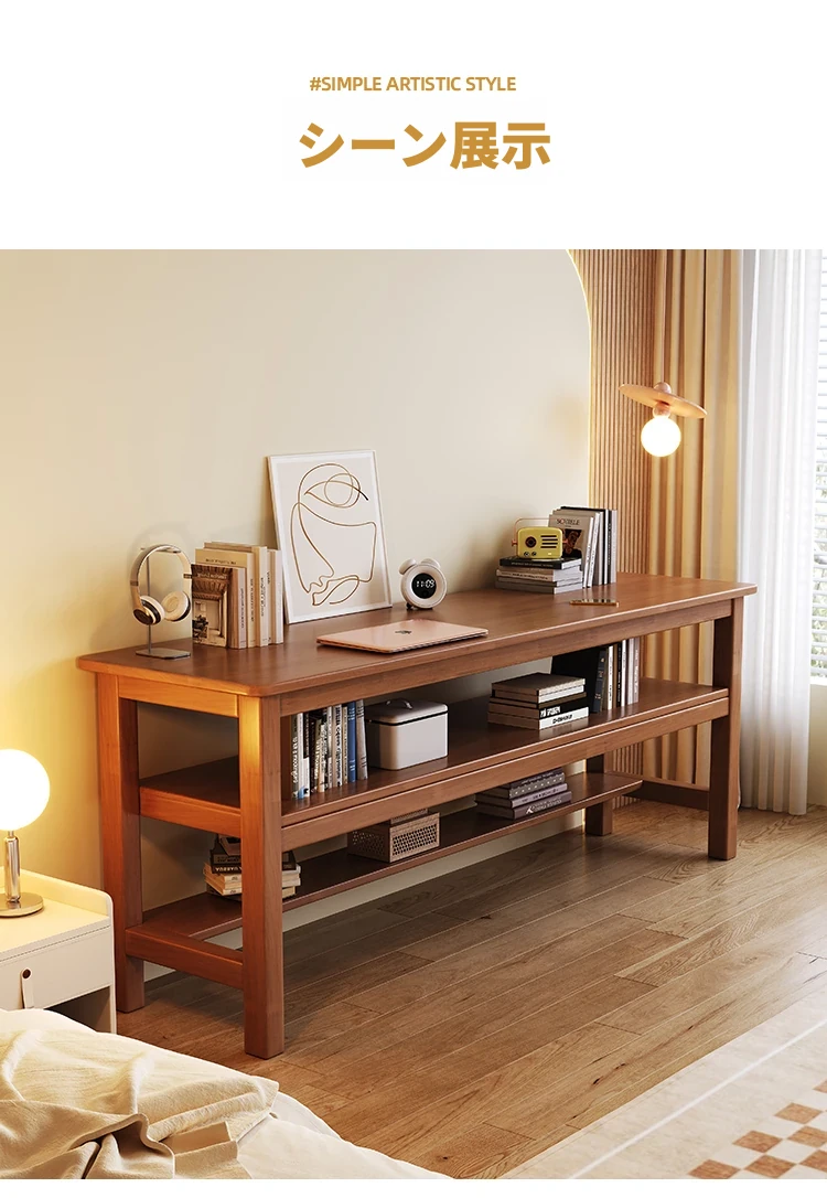 北欧スタイル天然木製ワークデスク - 壁付け可能!省スペースでおしゃれな長方形デザイン、ホームオフィスにピッタリなシンプルPCデスク。二人用としても快適!