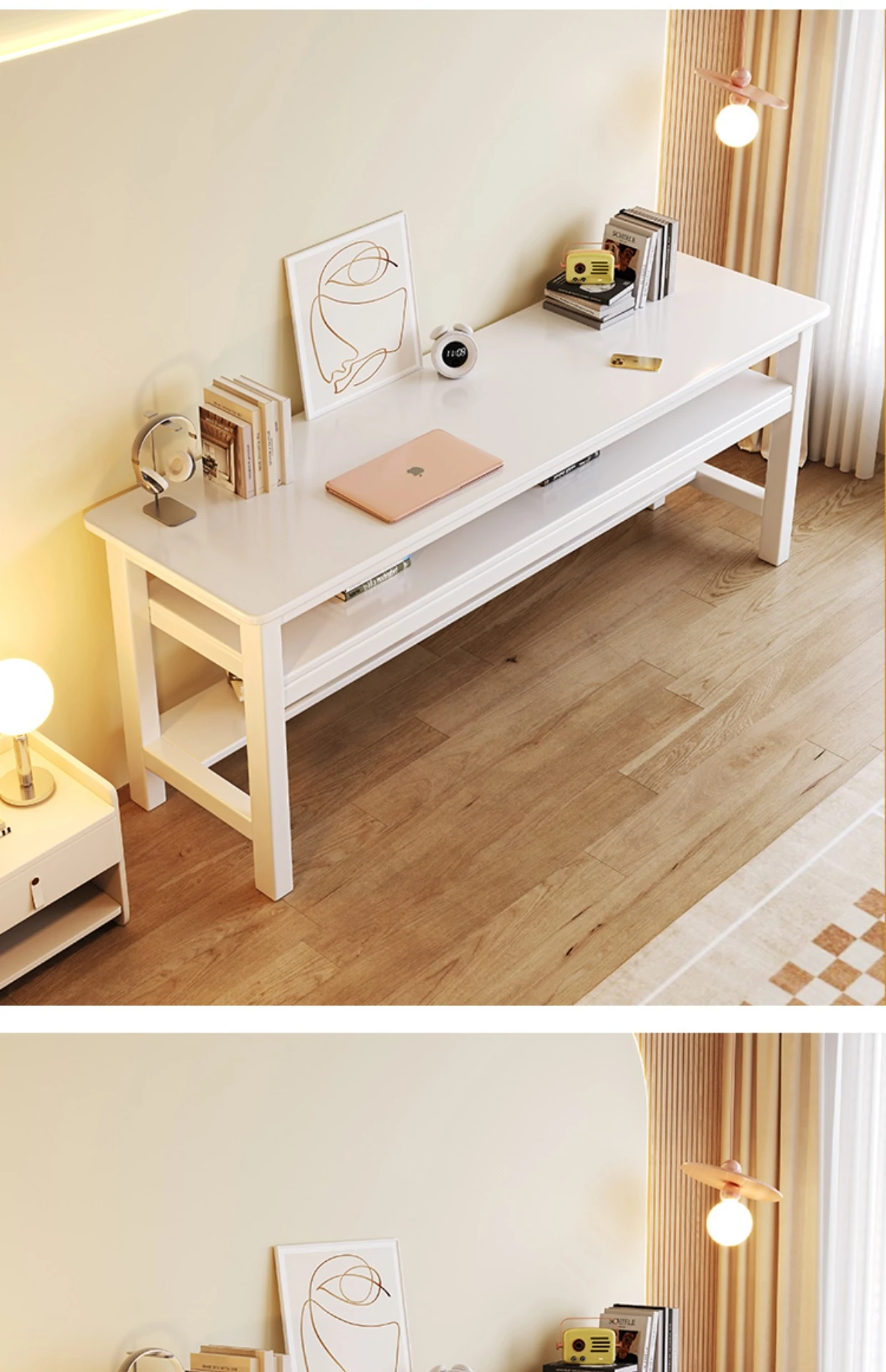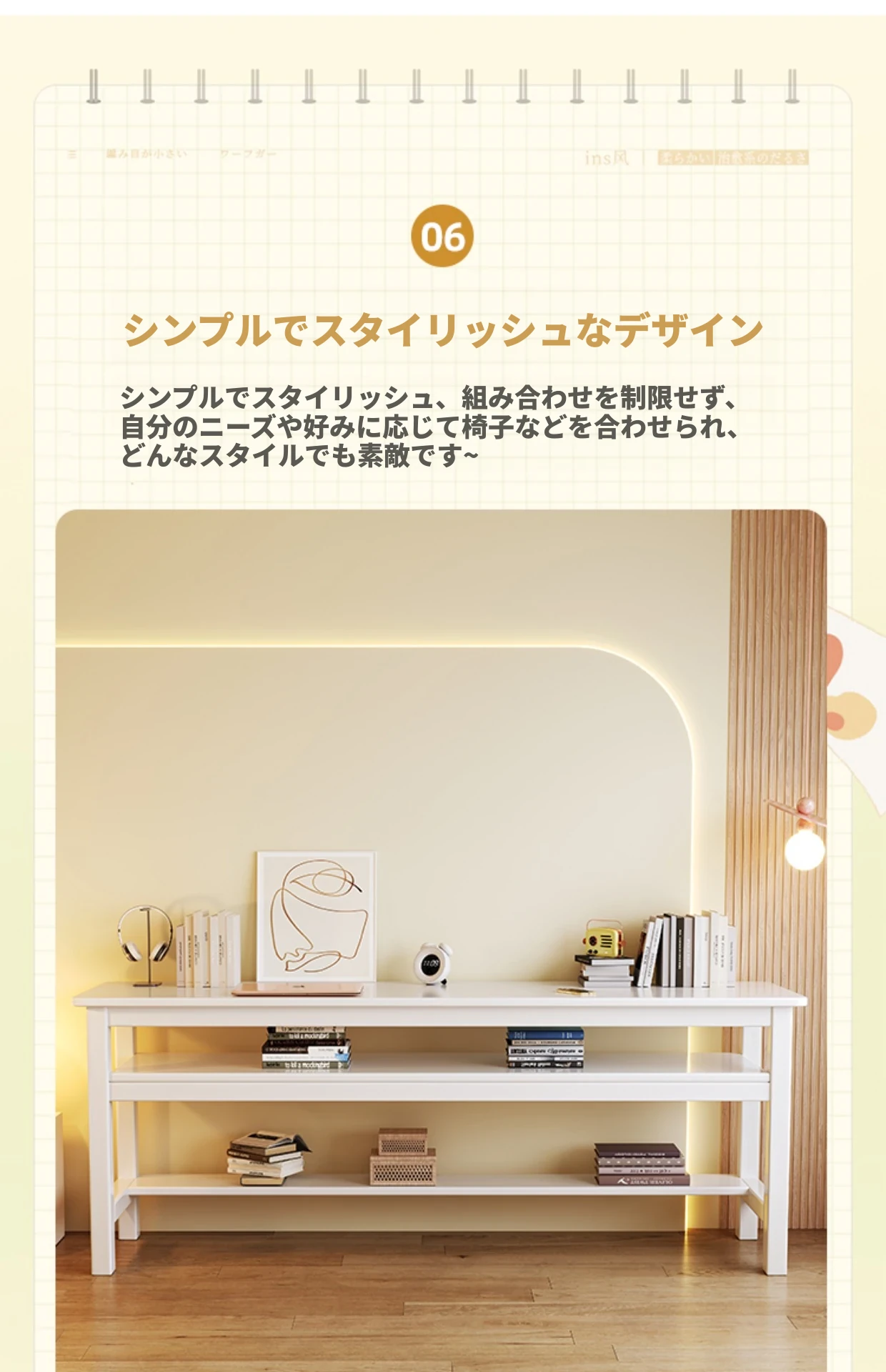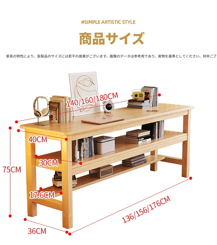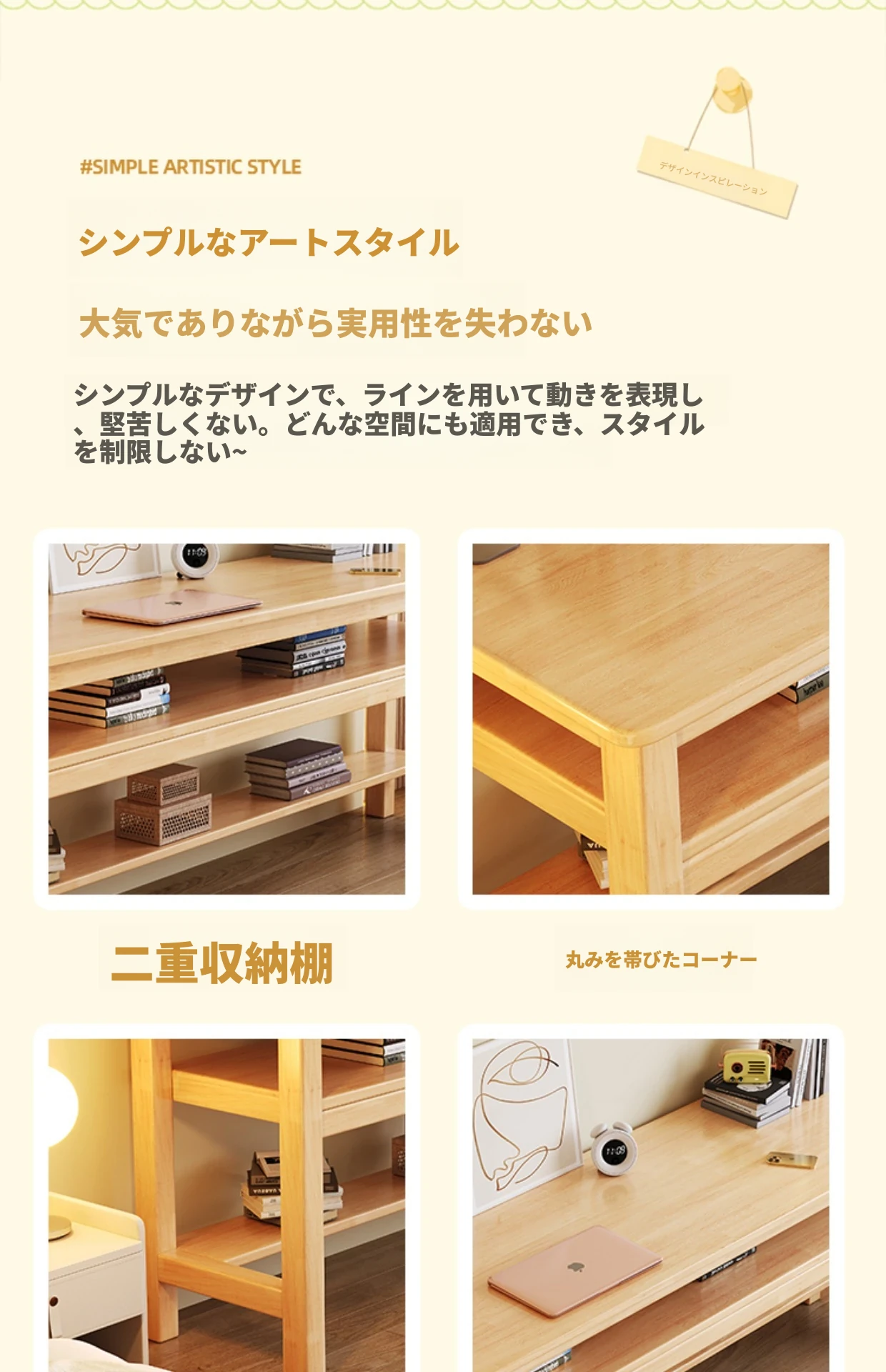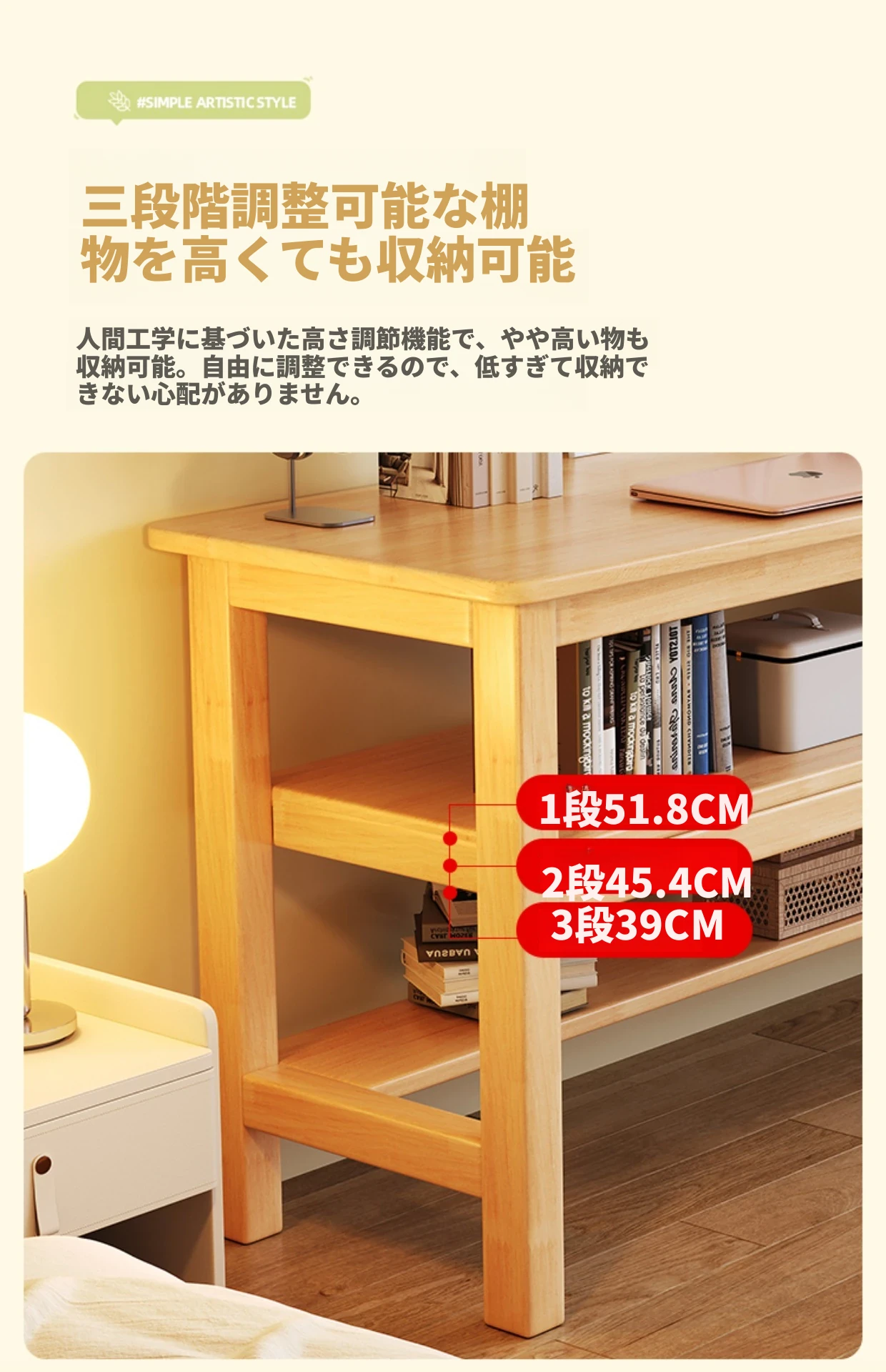 北欧スタイル天然木製ワークデスク - 壁付け可能!省スペースでおしゃれな長方形デザイン、ホームオフィスにピッタリなシンプルPCデスク。二人用としても快適!