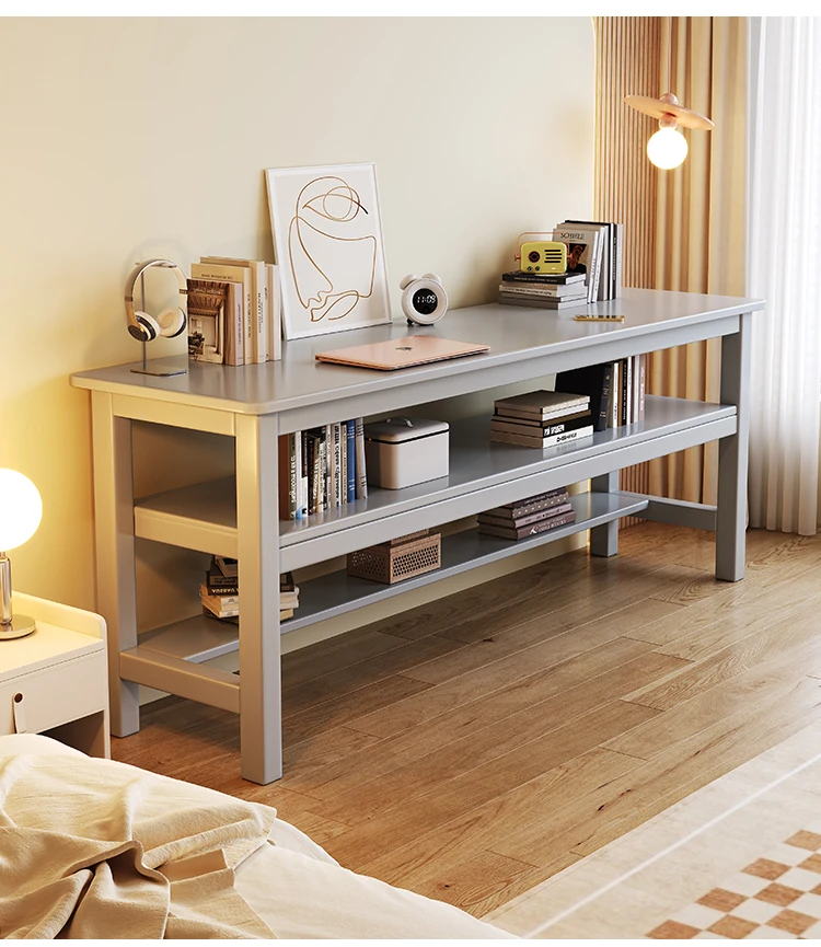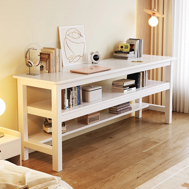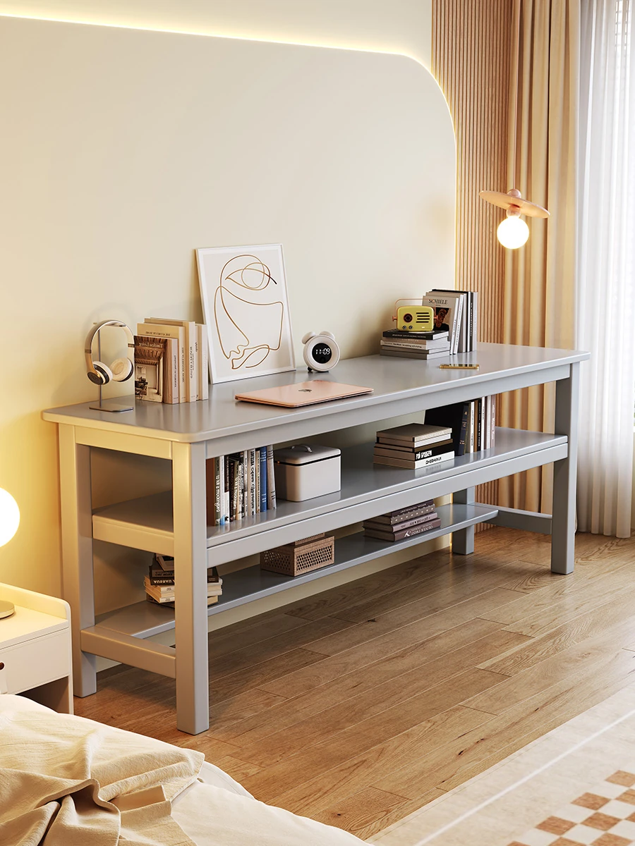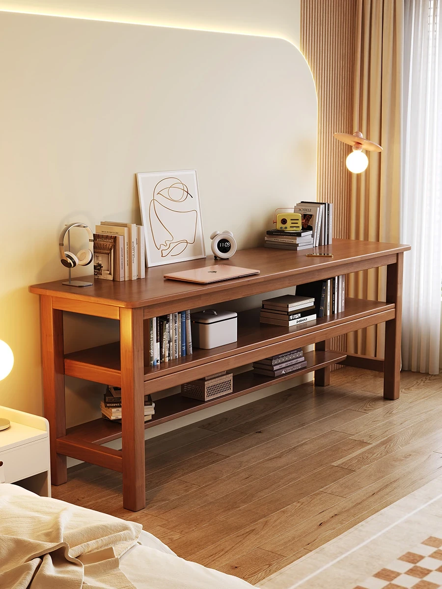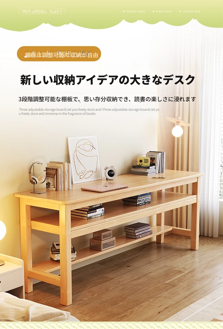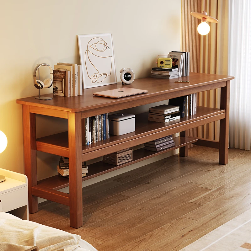 北欧スタイル天然木製ワークデスク - 壁付け可能!省スペースでおしゃれな長方形デザイン、ホームオフィスにピッタリなシンプルPCデスク。二人用としても快適!
