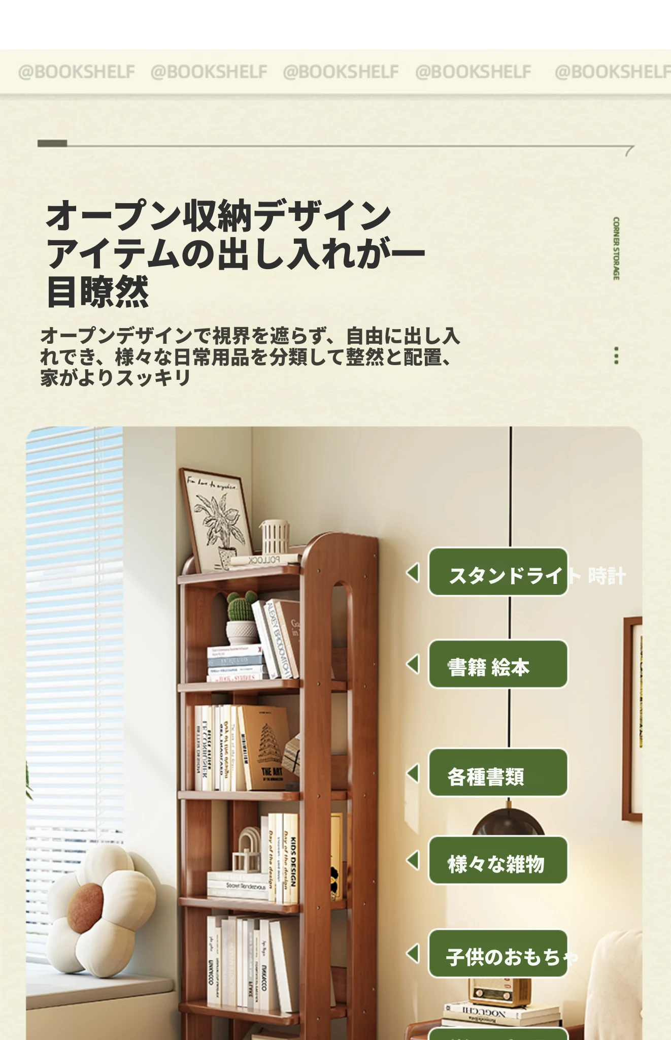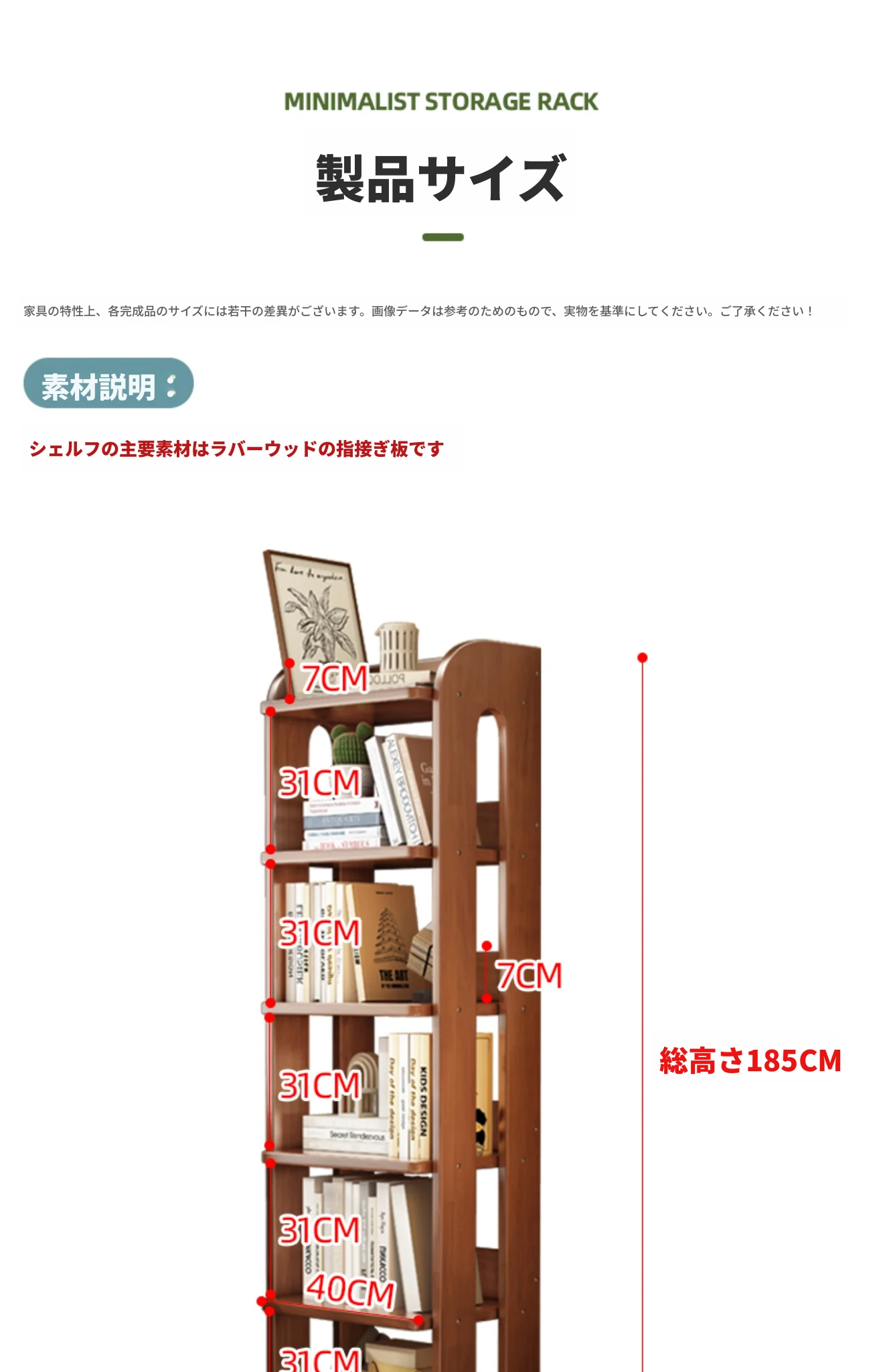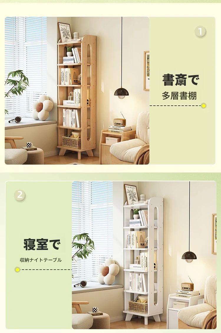 100%天然木製!多層スリム本棚 ~リビングとベッドルームに最適な省スペースデザイン~