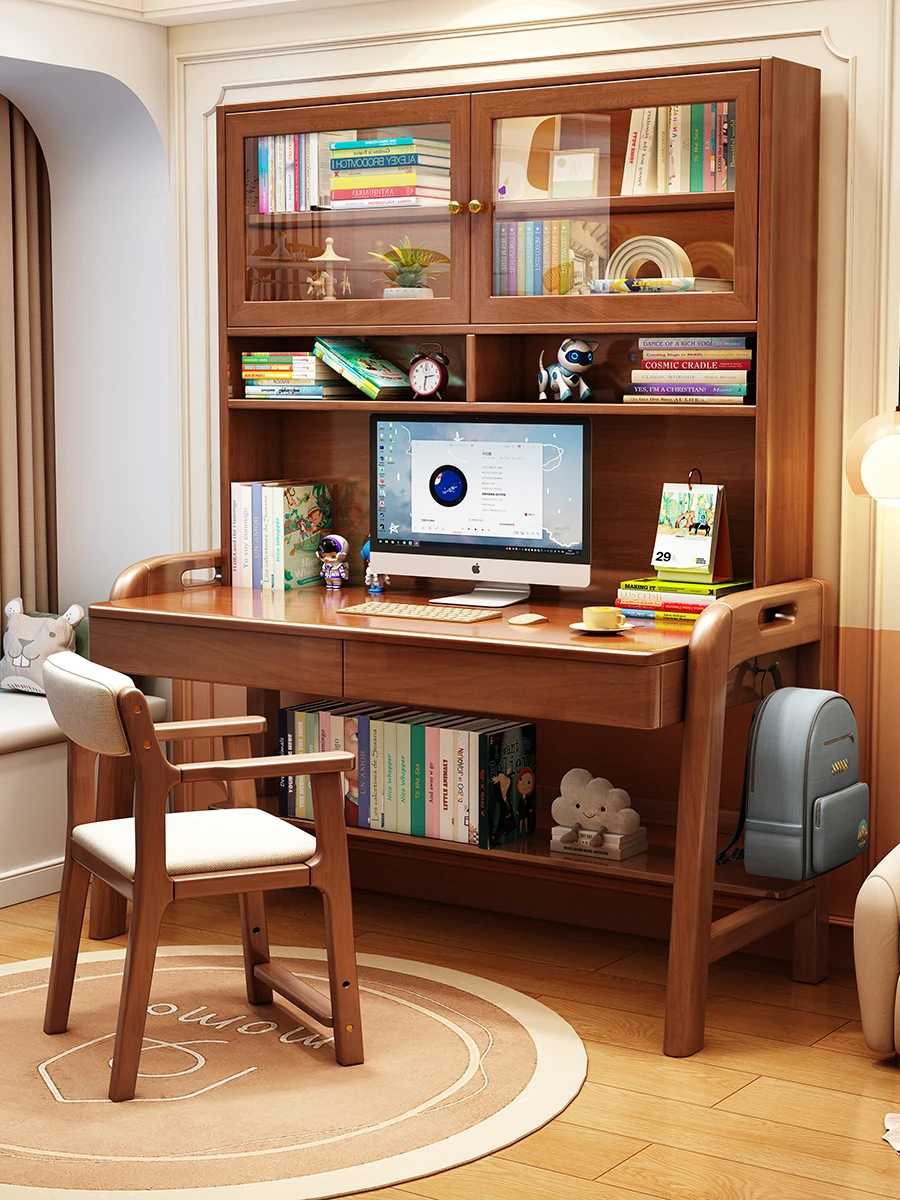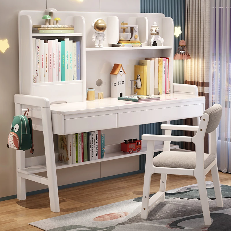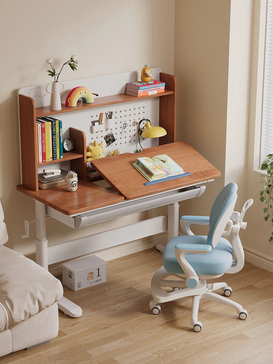 Solid Wood Study Desk for Kids - Adjustable Height Writing Table and Chair Set for Boys and Girls, Fun Cartoon Design, Perfect for Elementary Students