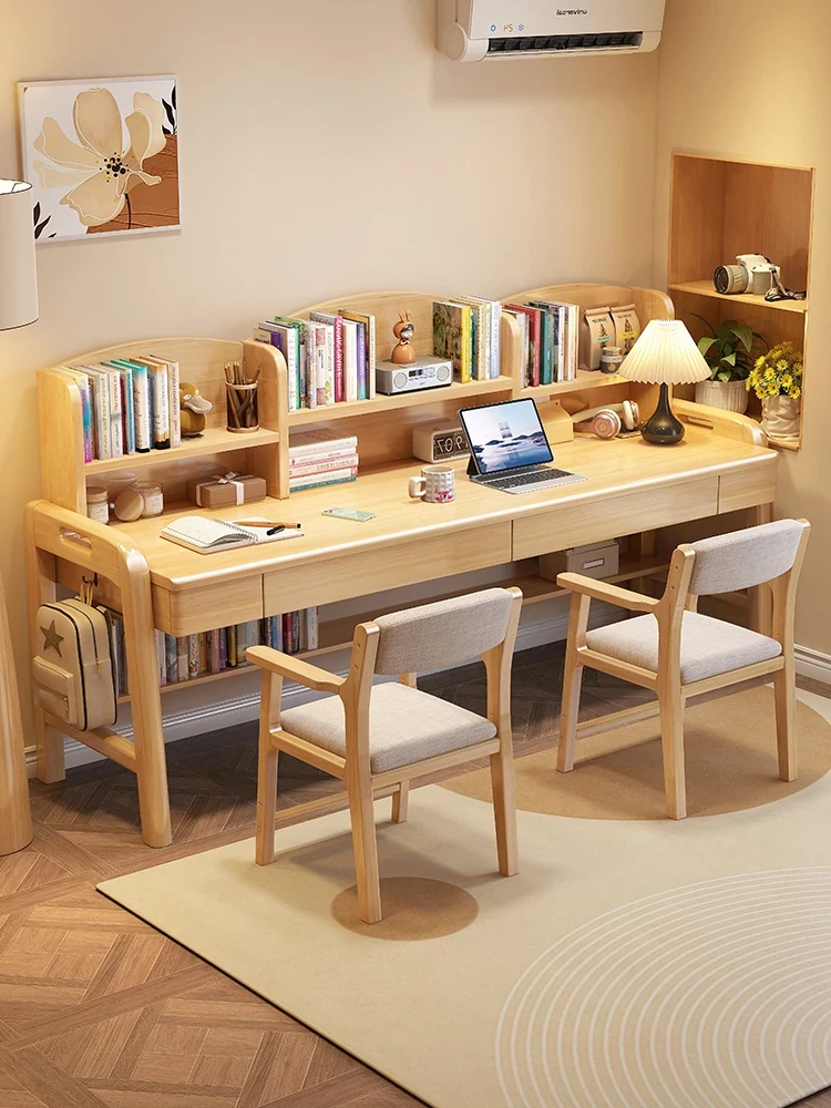 Rainbow# table + posture correction chair [log + pink]](Adjustable lifting table top)