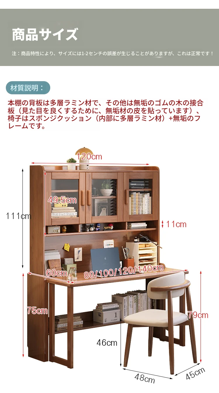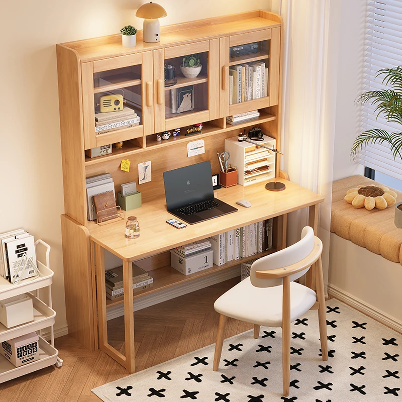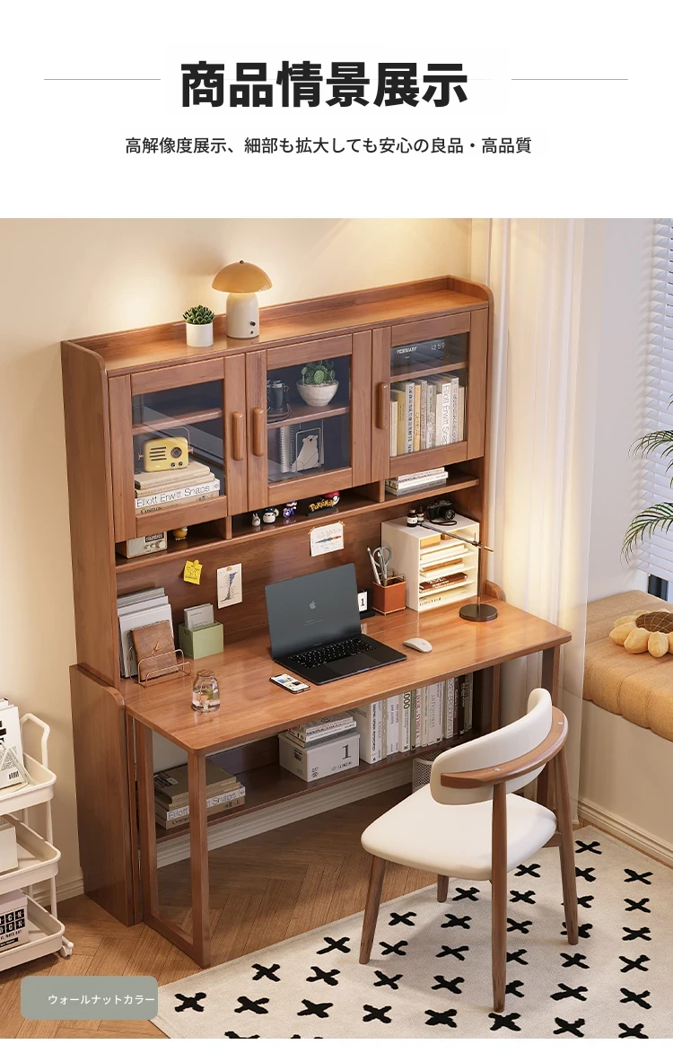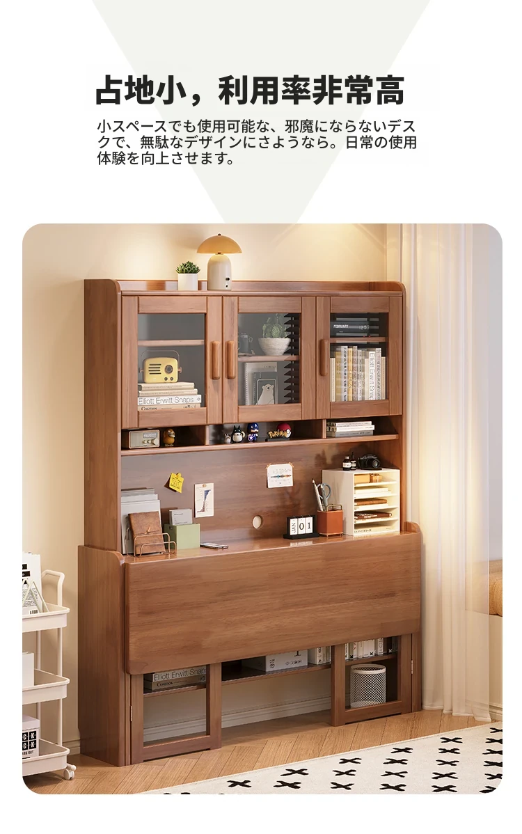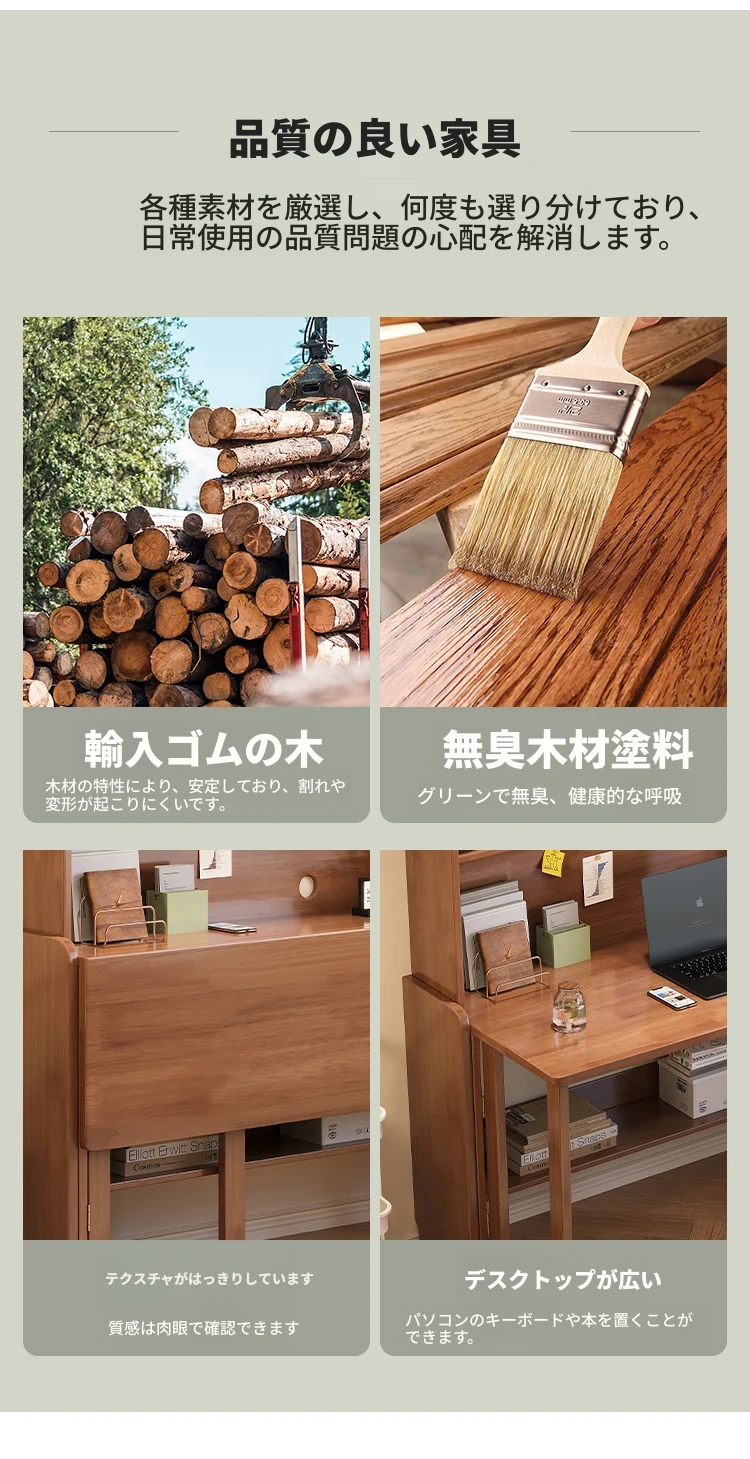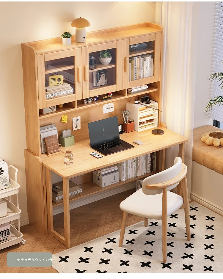天然木製!コンパクトで便利な折りたたみデスク&本棚一体型テーブル:小スペースにもぴったりの子供用学習デスク、伸縮可能なシンプルPCデスクーワークスペースを快適に!
