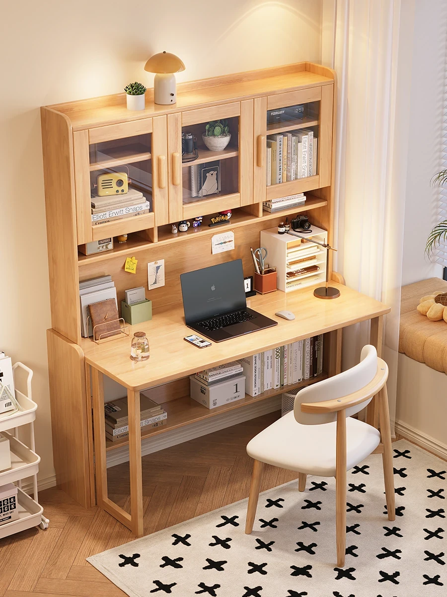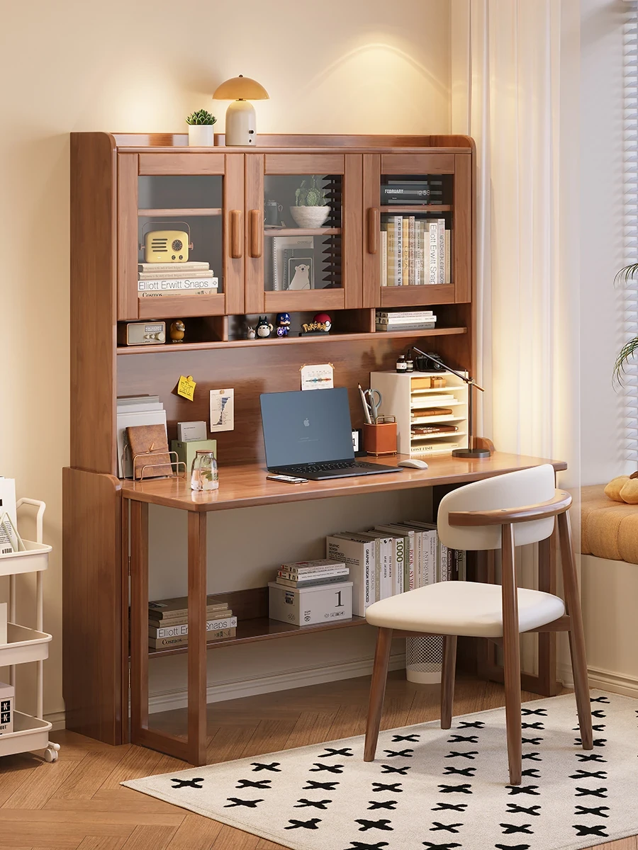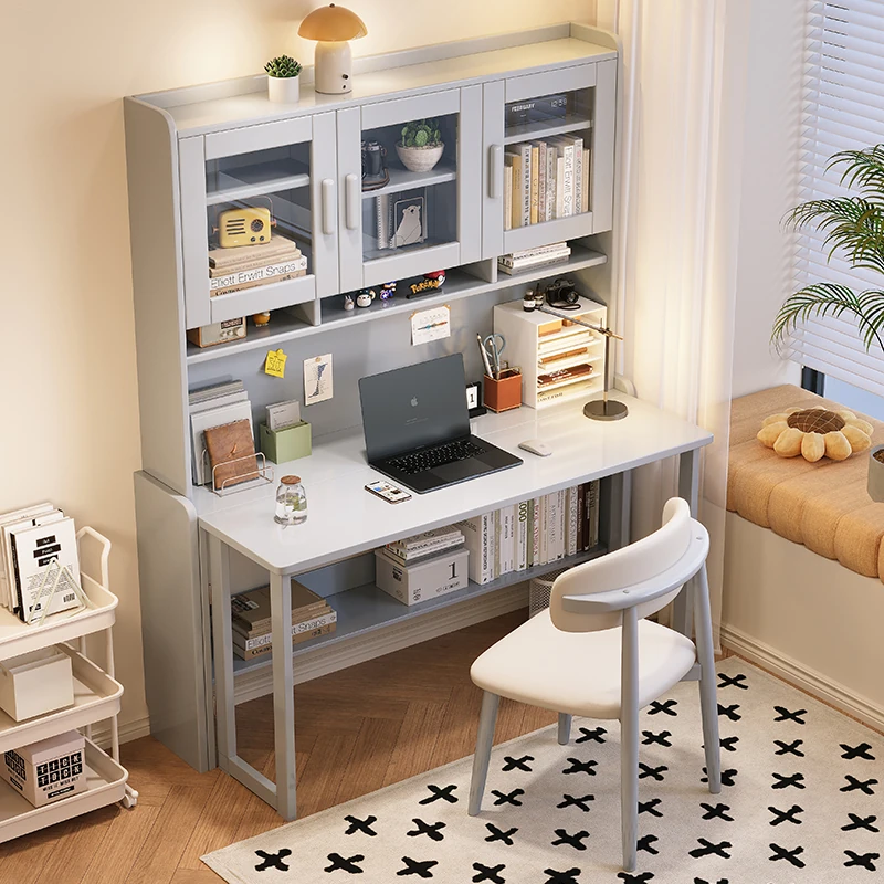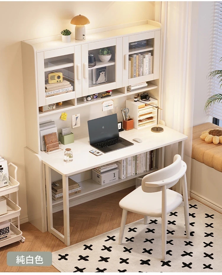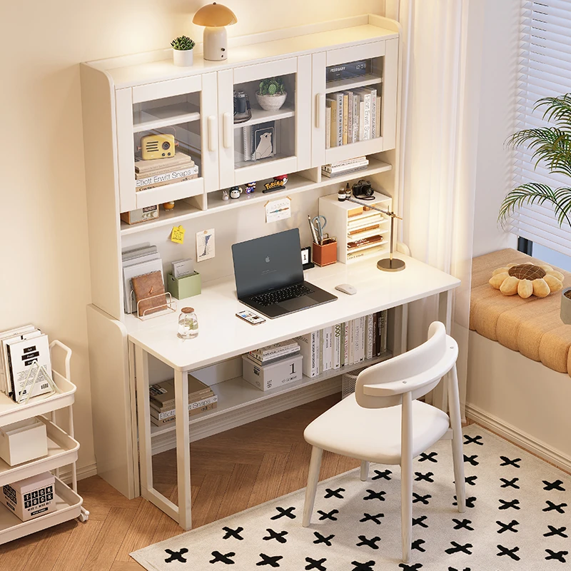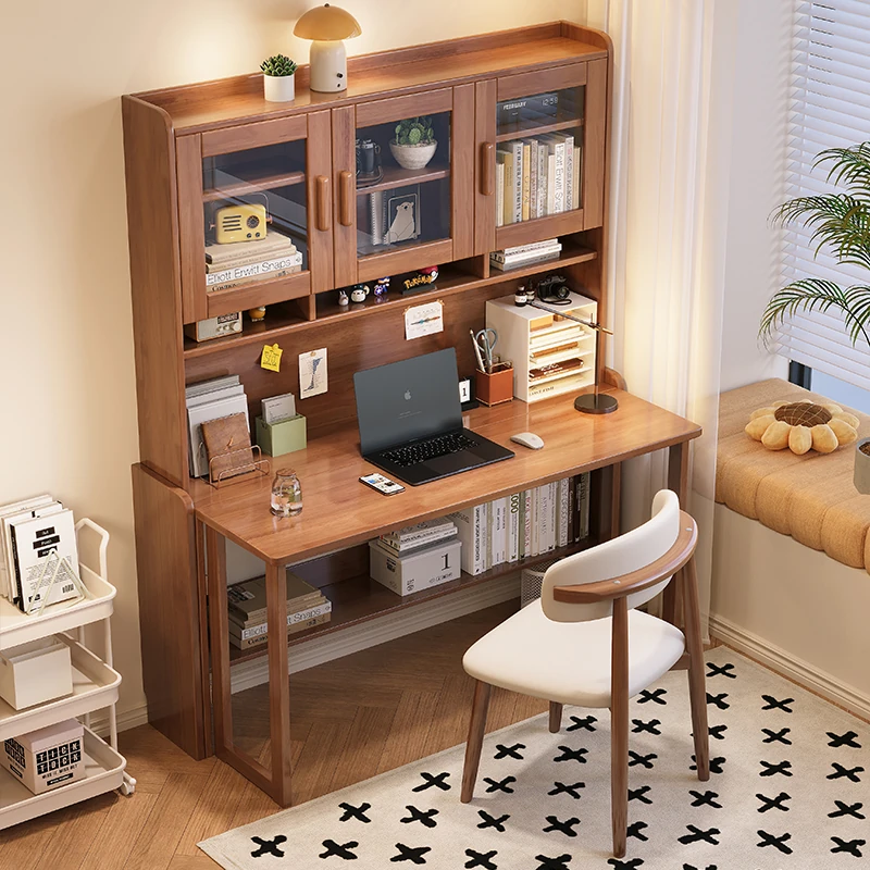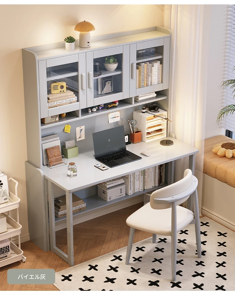 天然木製!コンパクトで便利な折りたたみデスク&本棚一体型テーブル:小スペースにもぴったりの子供用学習デスク、伸縮可能なシンプルPCデスクーワークスペースを快適に!