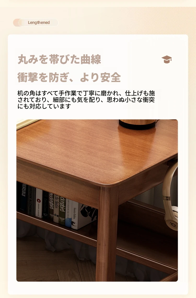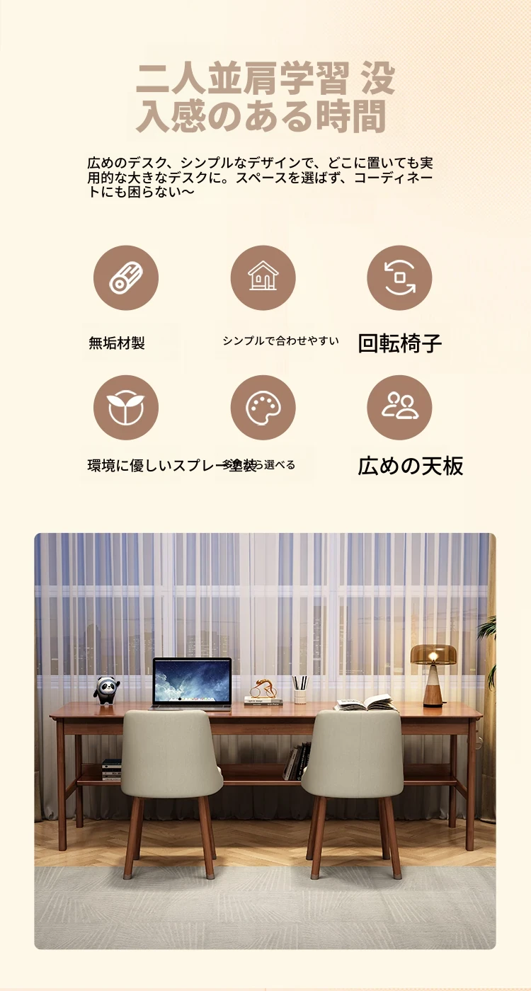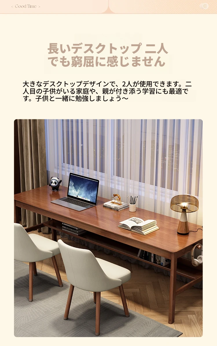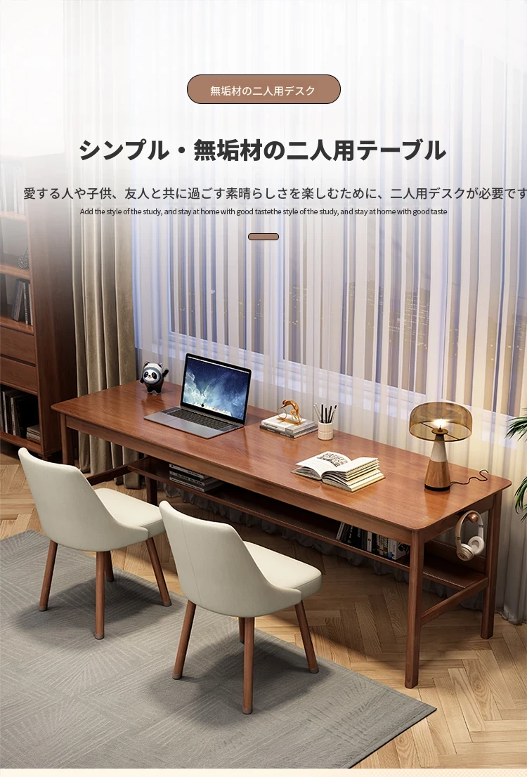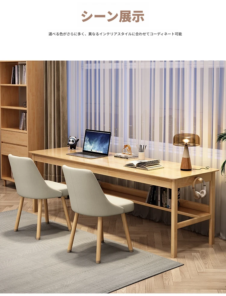 家庭用天然木製長机能デスク - 快適な学習環境を実現する拡張型、学生二人でもゆったり使える多機能書斎デスク。おしゃれなオフィスデスクやパソコンデスクにも最適!