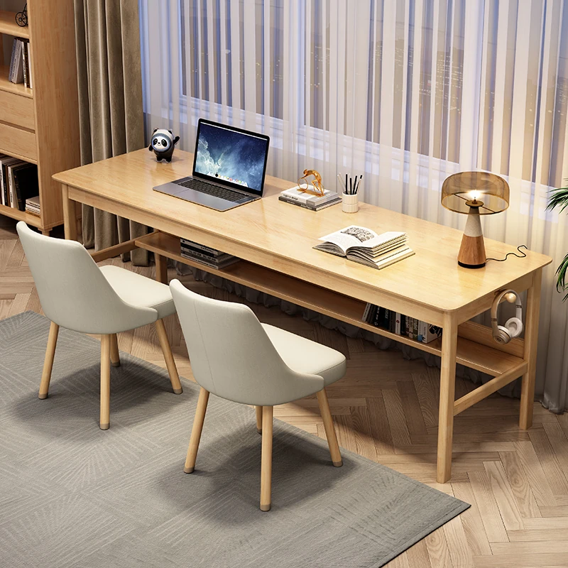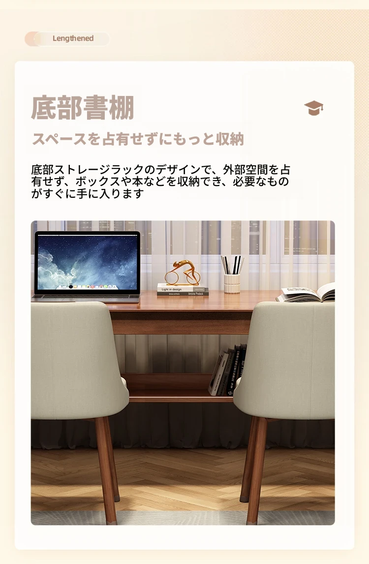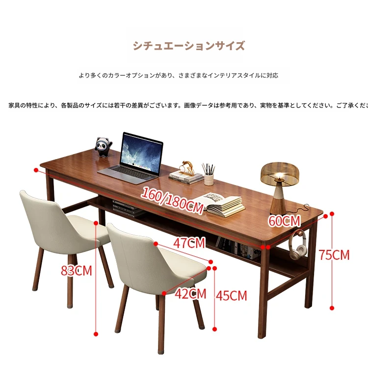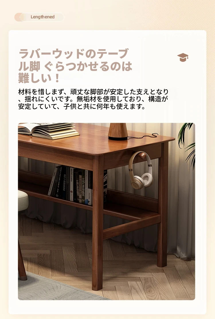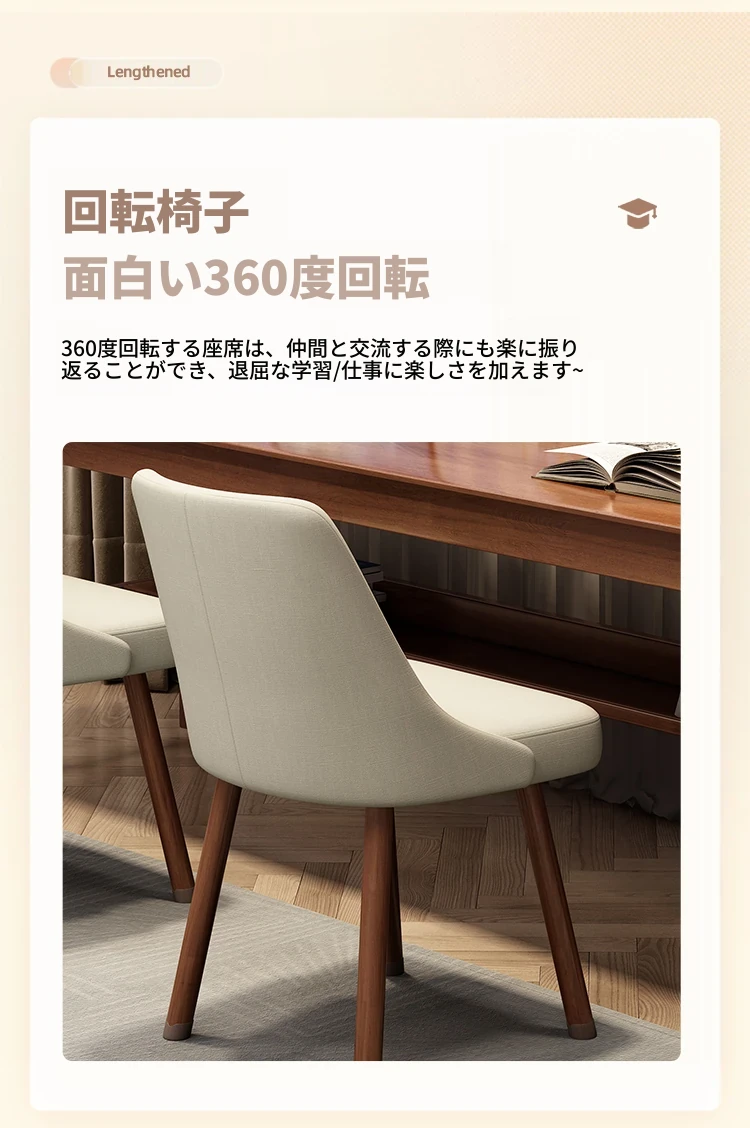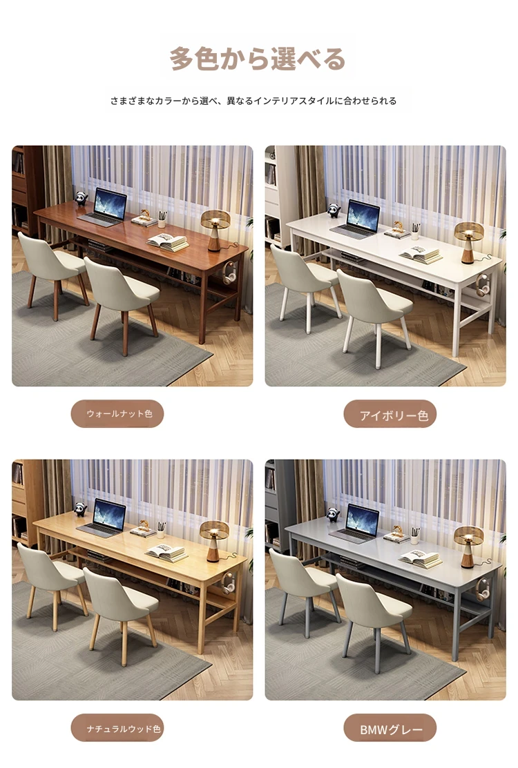 家庭用天然木製長机能デスク - 快適な学習環境を実現する拡張型、学生二人でもゆったり使える多機能書斎デスク。おしゃれなオフィスデスクやパソコンデスクにも最適!