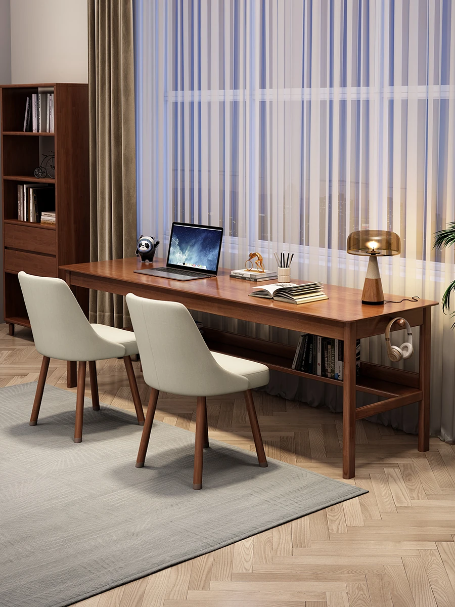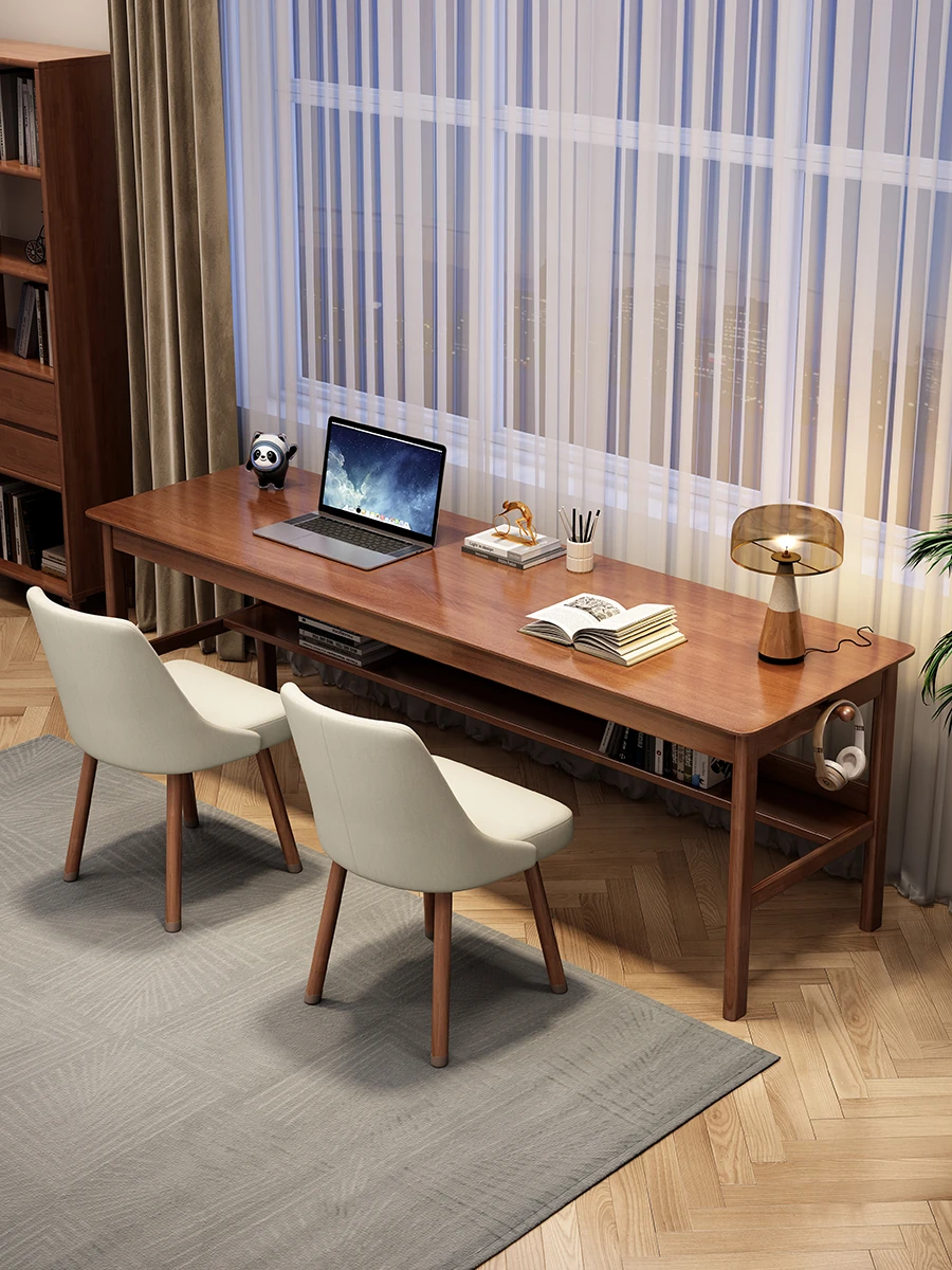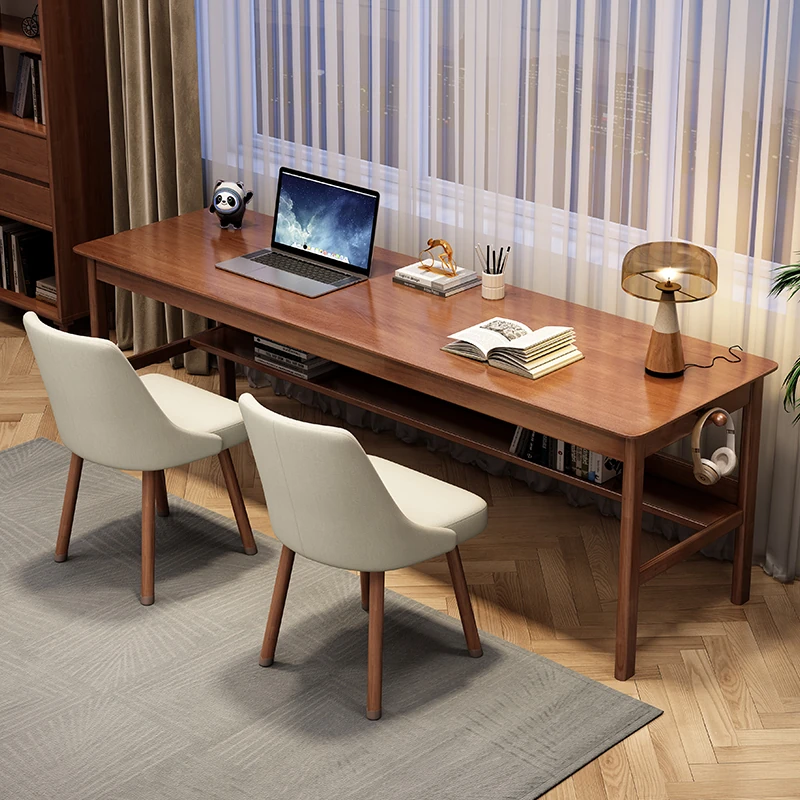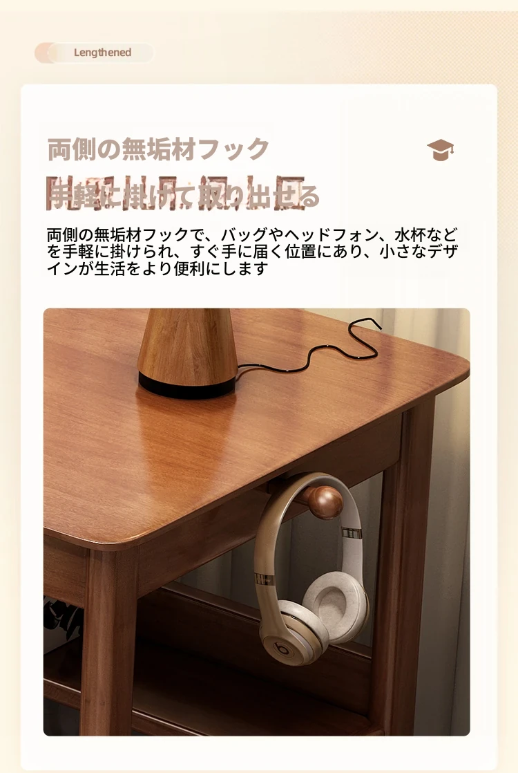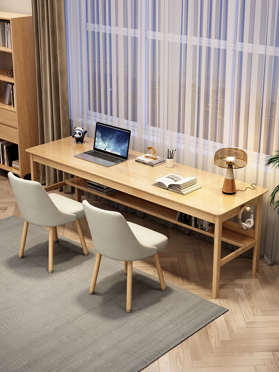家庭用天然木製長机能デスク - 快適な学習環境を実現する拡張型、学生二人でもゆったり使える多機能書斎デスク。おしゃれなオフィスデスクやパソコンデスクにも最適!